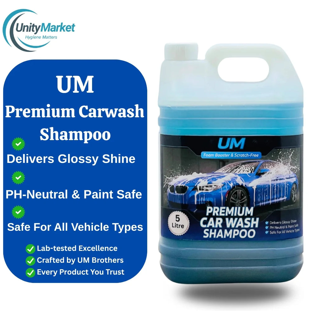 Give your car a showroom-like shine with UM Premium Car Wash Shampoo – Pakistan’s trusted scratch-free car wash shampoo. Powered by Foam Booster Technology, it creates a thick, rich lather that removes dust, dirt, and grease without harming your vehicle’s surface. Its pH-neutral formula is safe for all paints, clear coats, and protective layers, making it perfect for both daily washes and professional detailing. Unlike ordinary shampoos, UM not only cleans but also protects your car’s glossy finish.